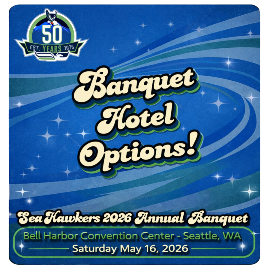 It's official! We have a new venue for our 2026 Annual Banquet! We will be celebrating our 2025 successes and taking a trip down memory lane as we celebrate 50 years for Sea Hawkers and Seahawks! Join us at Bell Harbour Convention Center as we Throwback to Greatness!